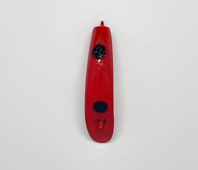 El diseño del Señuelo Aji presenta un patrón de color verde y rojo con detalles realistas que imitan la apariencia de un ají en el agua, asegurando una atracción constante tanto en aguas tranquilas como en corrientes más activas.