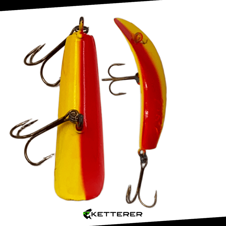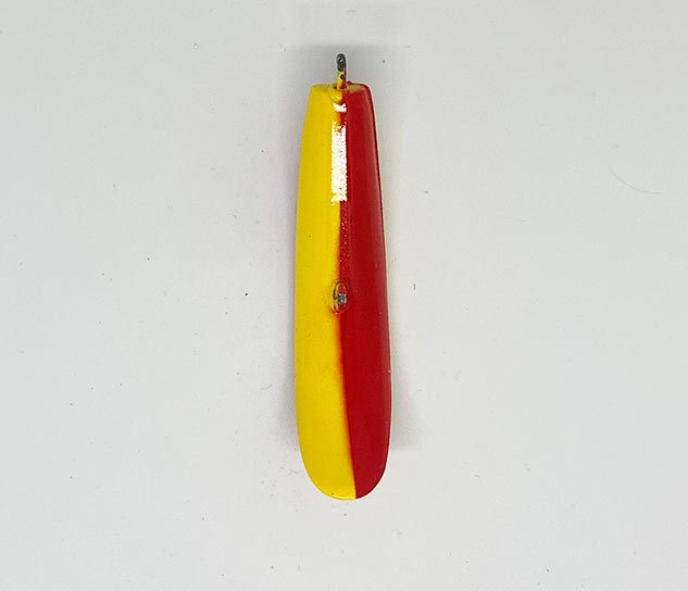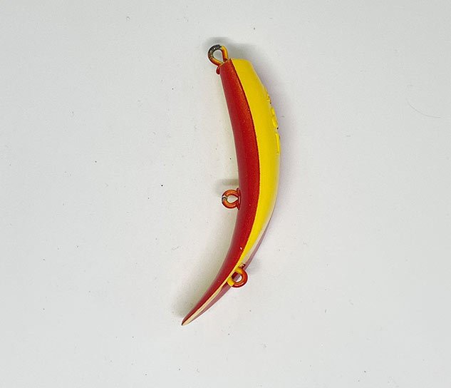 El diseño del Señuelo Español presenta un patrón de colores amarillo y rojo brillantes con detalles realistas que imitan la apariencia de un pez forrajero, asegurando una atracción constante tanto en aguas tranquilas como en corrientes más activas.